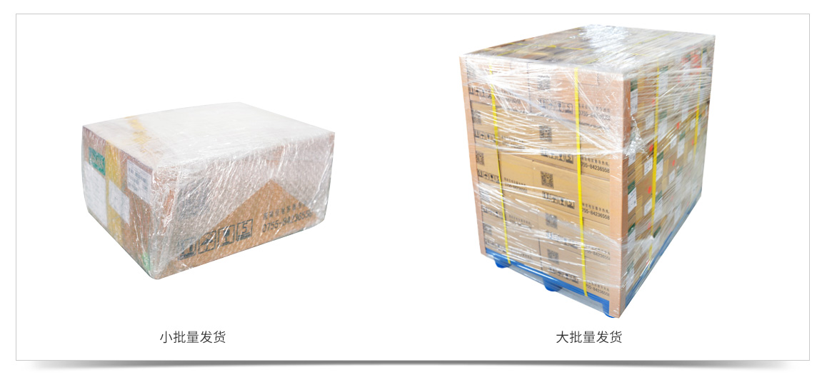CECTN電解電容小批量發(fā)貨時,直接采用纏繞膜纏繞,大批量發(fā)貨時采用卡板堆垛,并用打包帶進行固定,最后外層纏上纏繞膜。(見上圖)